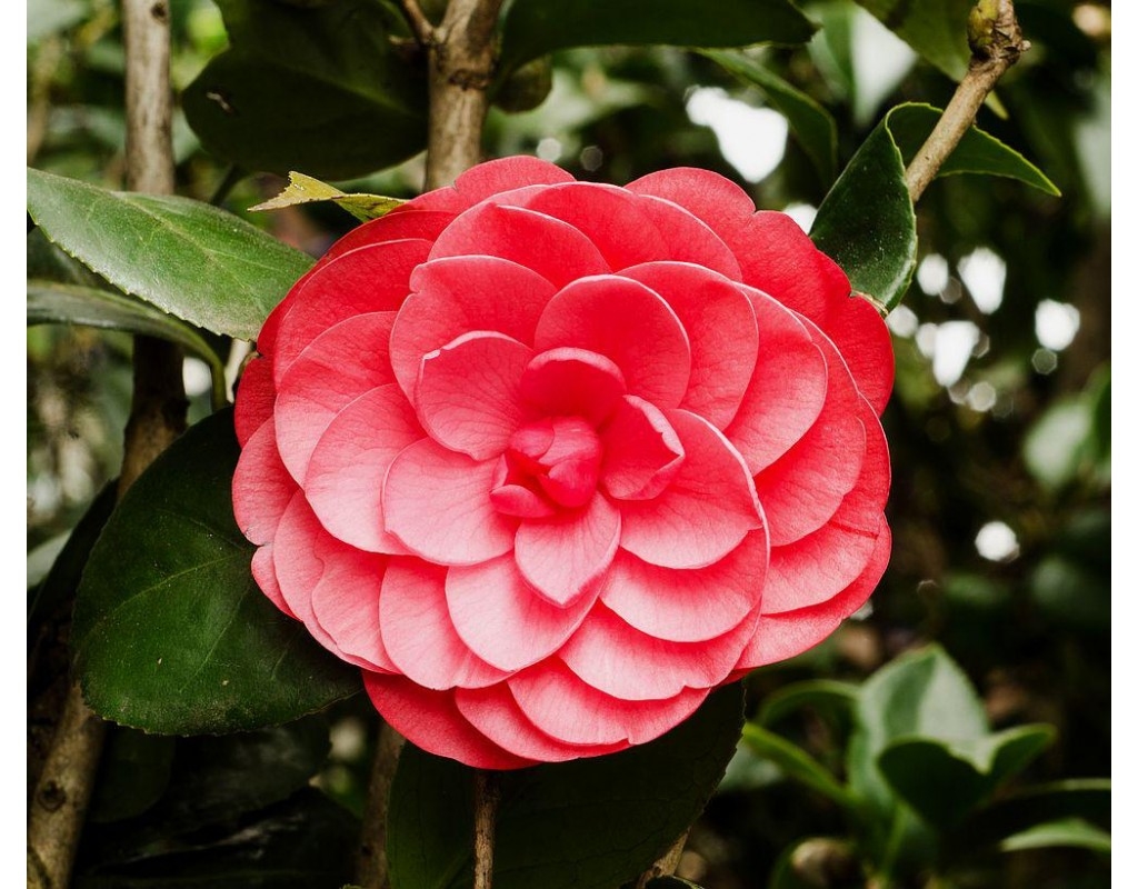 Kamelien mit dem botanischen Namen Camellia japonica sind die Botschafter Japans im mediterranen Garten. Ihre herrlichen gefüllten Blüten und ihre dunkelgrün glänzenden Blätter machen die Pflanze zu einer besonders edlen Zierde für Ihren Garten oder Ihre Terrasse. Die Sorte Black Lace begeistert mit ihren dachziegelförmigen Blütenblättern.