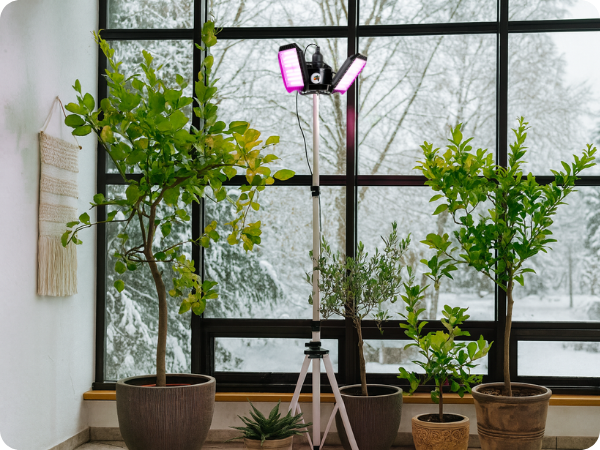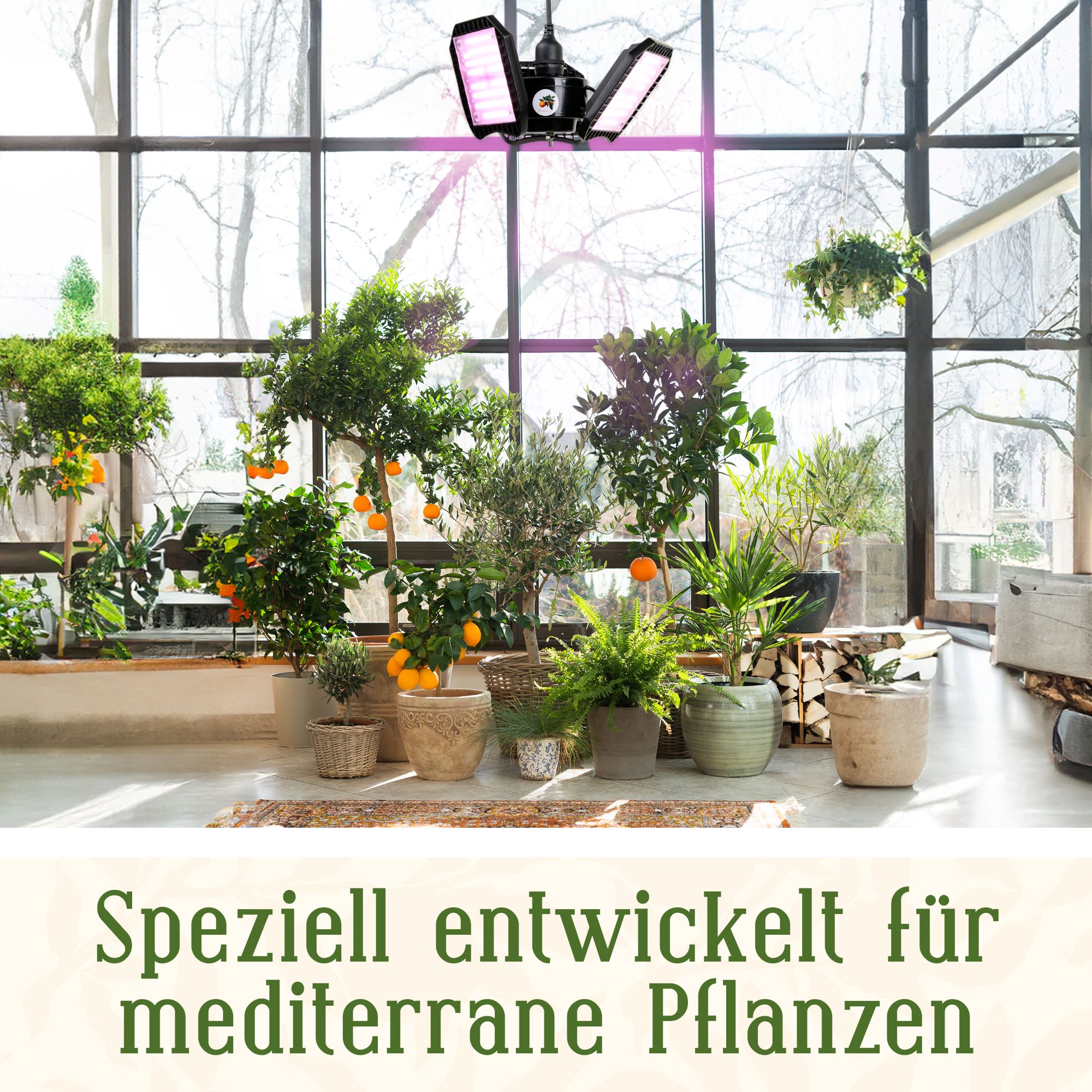 Die LED-Pflanzenlampe FLEX 100 W ist die Premiumlösung für anspruchsvolle Pflanzenfreunde. Gerade große mediterrane Pflanzen wie Zitronen- und Orangenbäume, Oliven oder Feigen leiden im Winter unter Lichtmangel. Bei Temperaturen über 10 °C reicht selbst helles Fensterlicht nicht aus, da moderne Fenster kaum noch die nötige Lichtenergie durchlassen.