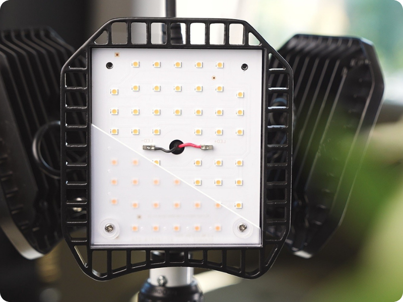 Der Strahler bietet eine extrem starke und gleichmäßige Ausleuchtung, sodass alle Pflanzen rundherum genug Licht bekommen haben, ohne dass ich ständig die Position ändern musste. Besonders praktisch ist das stabile Stativ, das sich flexibel anpassen lässt. Trotz der intensiven Nutzung war der Stromverbrauch absolut im Rahmen.