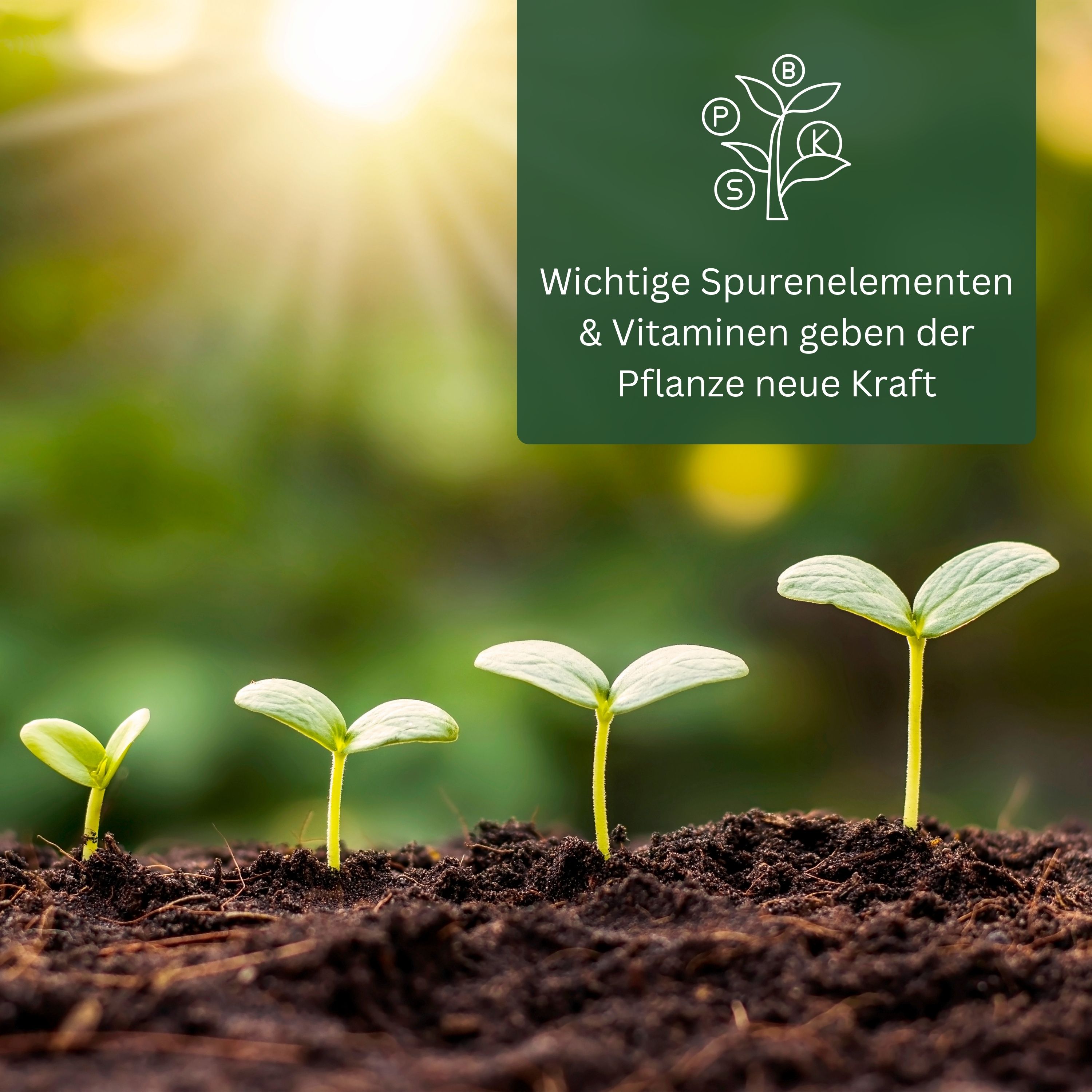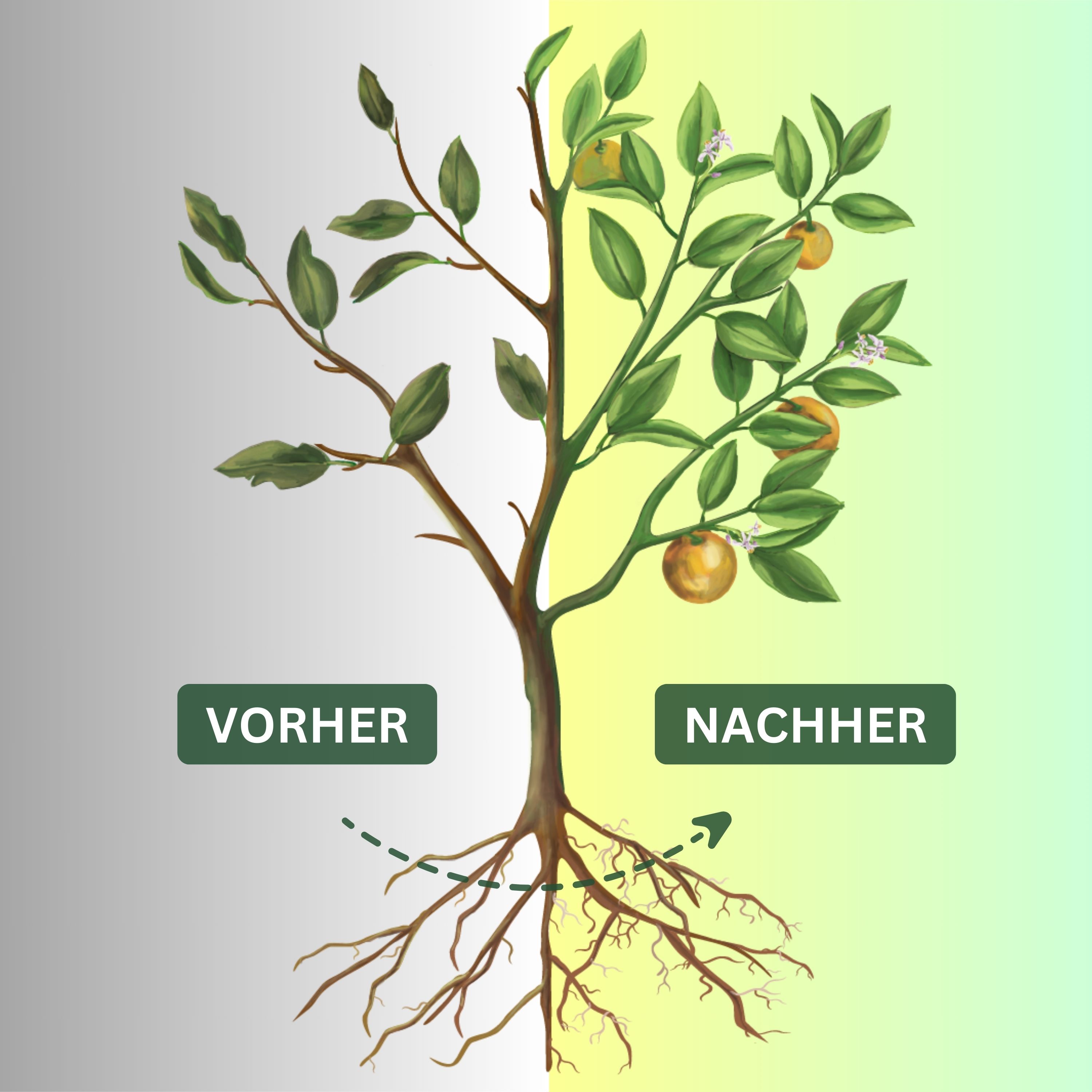 Besonders geeignet für Bäume, Sträucher, mediterrane Pflanzen & Neupflanzungen. Einfach in Wasser mischen und im Wurzelbereich gießen – nur 3 Anwendungen pro Jahr nötig! Perfekt für alle, die ihren Pflanzen einen starken Wachstumsschub geben möchten.