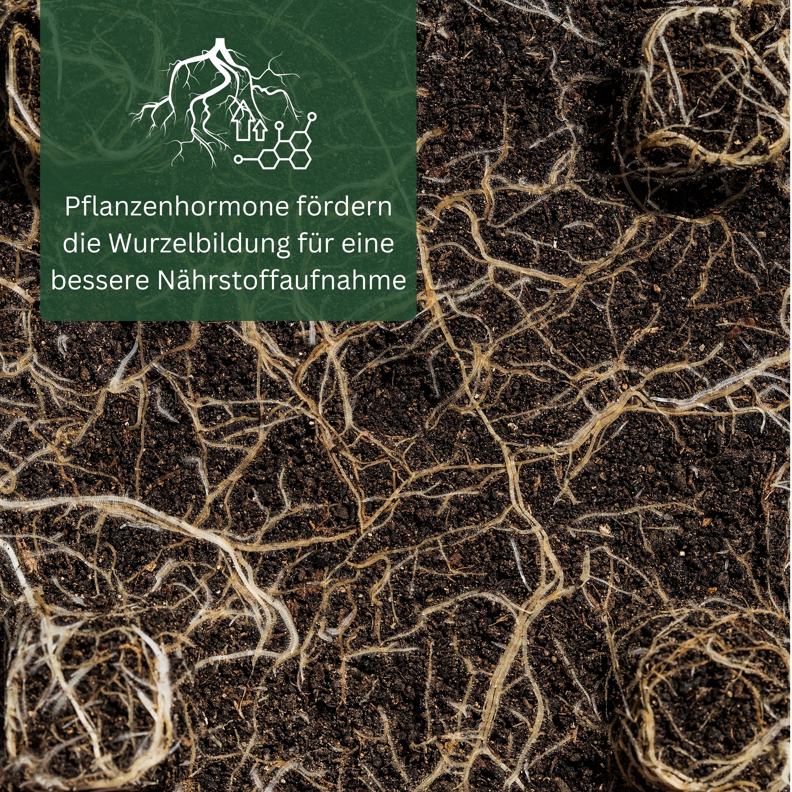 Diese hochwirksame Formel versorgt deine Pflanzen mit essenziellen Spurenelementen wie Eisen, Magnesium und Zink, die das Zellwachstum unterstützen. Zusätzlich enthaltene Pflanzenhormone fördern gezielt die Wurzelbildung, sodass deine Pflanzen Nährstoffe besser aufnehmen und sich schneller regenerieren können.
