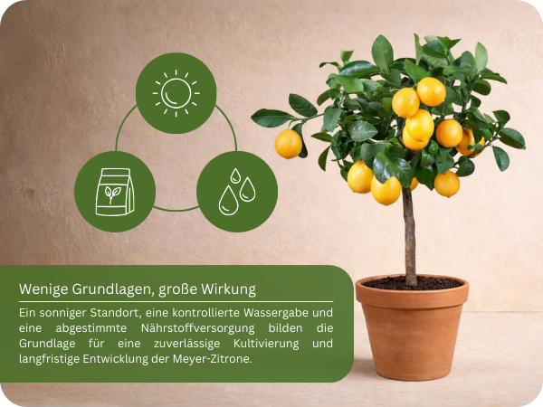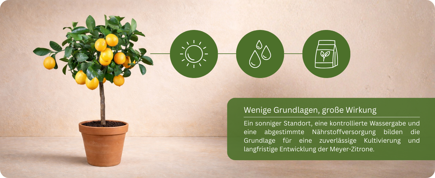 💨 Tipp: Die Meyer-Zitrone ist etwas empfindlicher gegenüber Kälte als andere Sorten. Ein besonders geschützter Platz ist daher wichtig, um Blüten und junge Früchte zu erhalten.