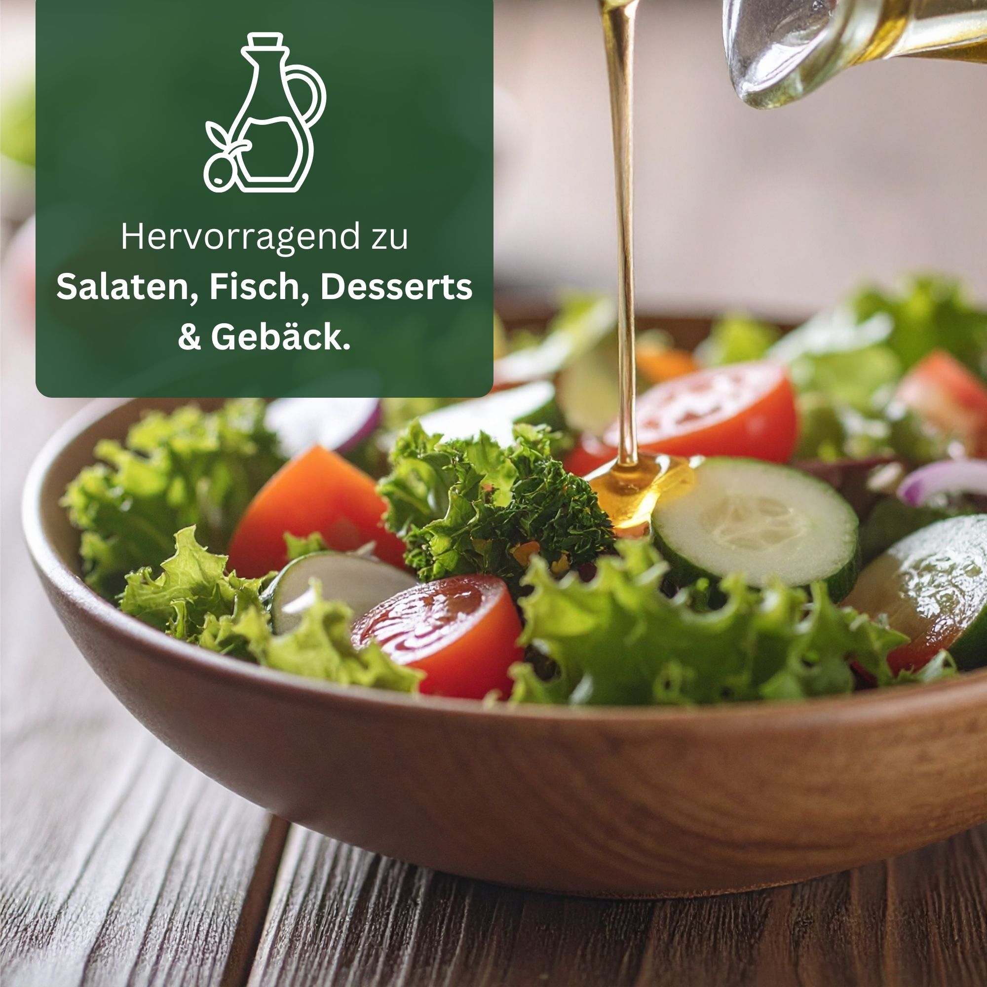 Perfekt zu Fisch, Meeresfrüchten, Pasta, Salaten, Antipasti, gegrilltem Gemüse oder als feines Finish über Carpaccio und Risotto.