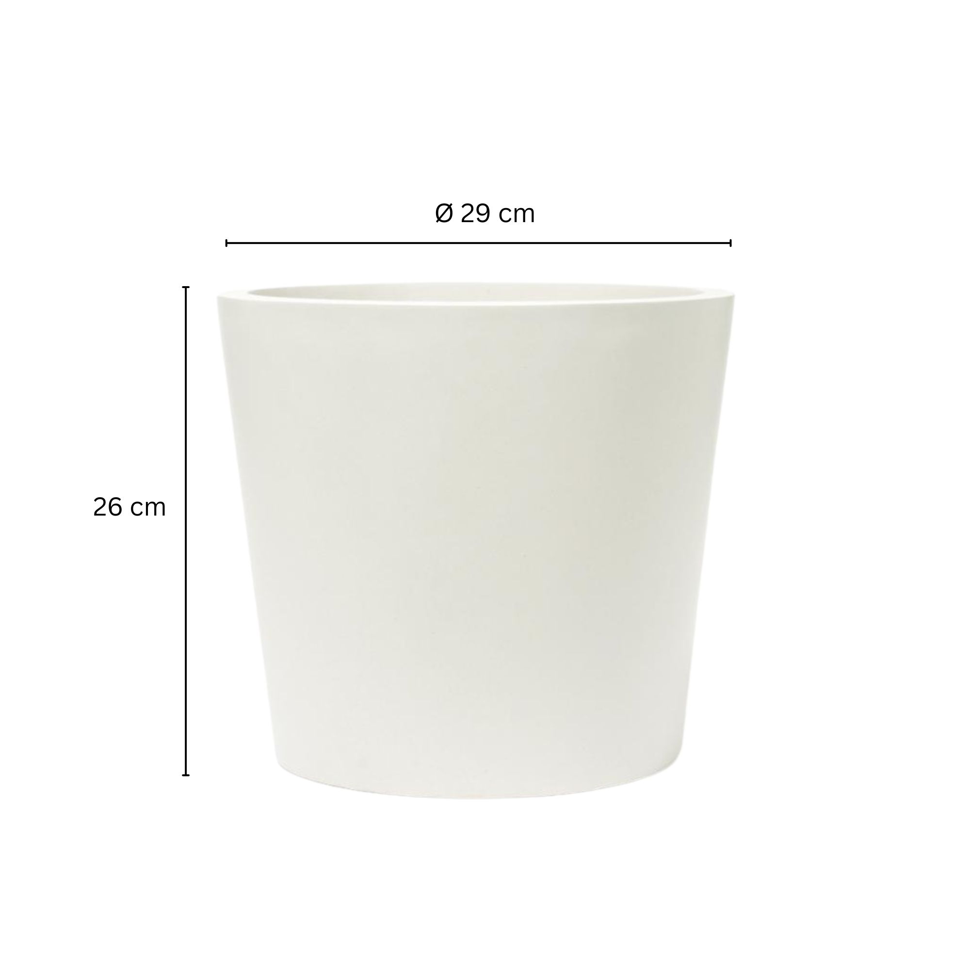 Durchmesser: 20cm - Höhe: 18cm• Glasfaserverstärkter Kunststoff• Leicht und praktisch• UV-beständig• Robust• Einzelanfertigung in Handarbeit• Raue Oberflächen• Große Standflächen mit integrierten Füßen und Bodenloch