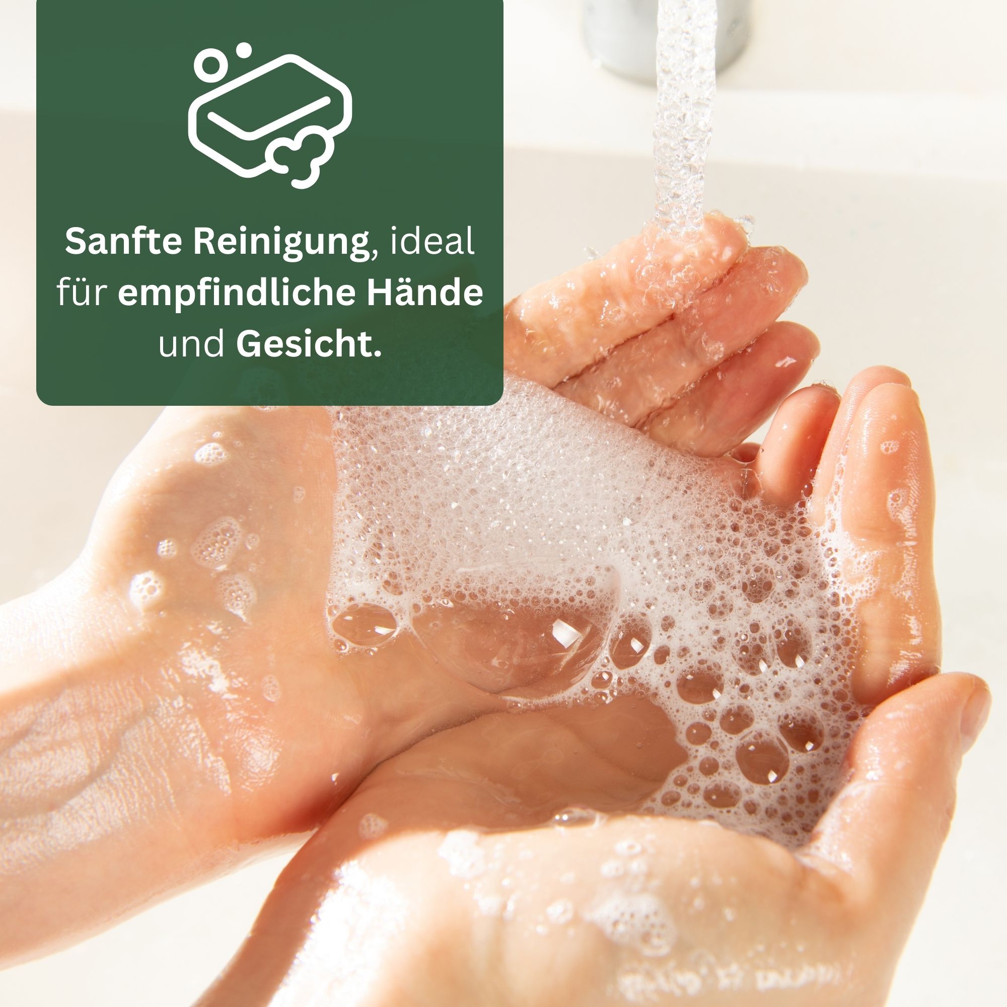 Auf die nasse Haut einmassieren, bis sich Schaum bildet, dann abspülen. Rinse-off-Produkt für Bad und Dusche. Ideal für die Gesichtsreinigung.