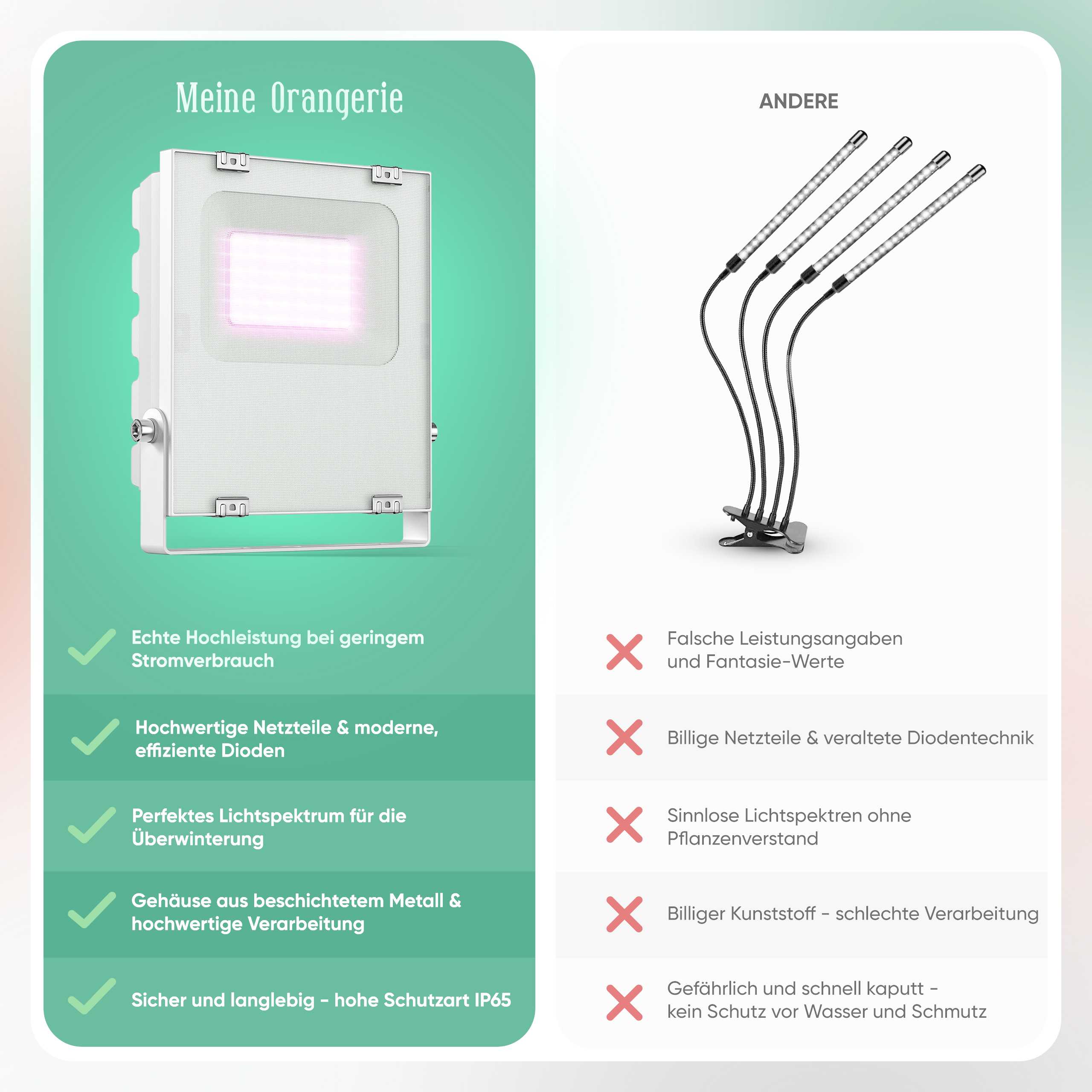 - FOKUS PFLANZE - geben ein geradliniges und effektives Licht ab, dass nicht nach dem „Gießkannenprinzip“ ausleuchtet