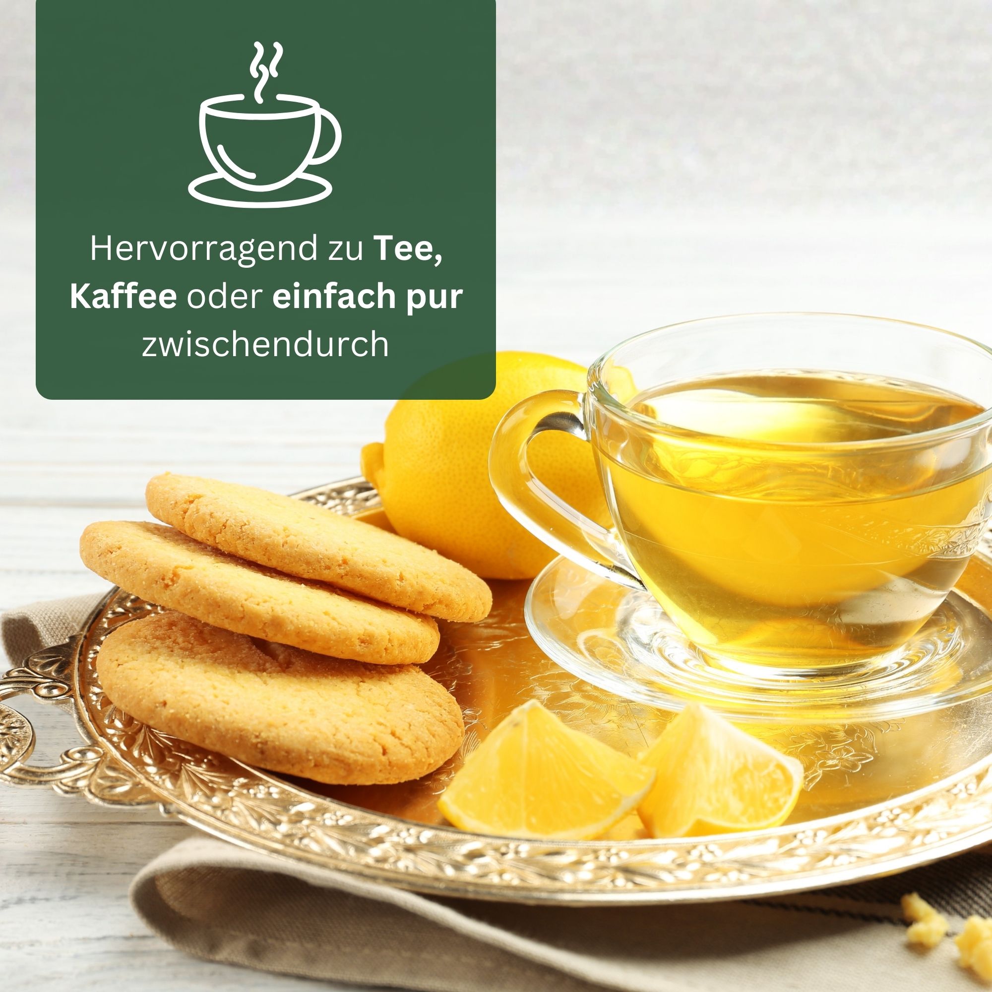 Ihr feiner Zitronenduft, die leichte Süße und der zarte Biss machen diese Kekse zu einem herrlich erfrischenden Gebäckmoment. Perfekt für alle, die eine natürliche, unkomplizierte und gesunde Alternative suchen – mit authentischem Geschmack aus Sizilien.