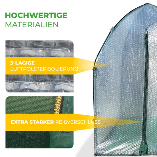 - Lichtdurchlässige, 3-lagige Luftpolsterfolie mit UV-Resistenz: für maximale Isolierung und optimale klimatische Bedingungen mit lebensnotwendigem Tageslicht – energiesparend und effektiv.
