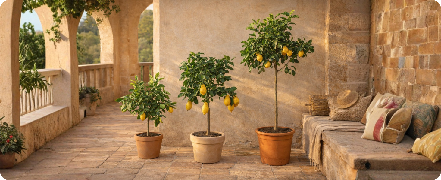 💨 Tipp: Ein Platz an einer warmen Hauswand oder im geschützten Innenhof ist ideal. Dort speichert die Umgebung Wärme, und der Zitronenbaum kann selbst in kühleren Nächten länger draußen bleiben.