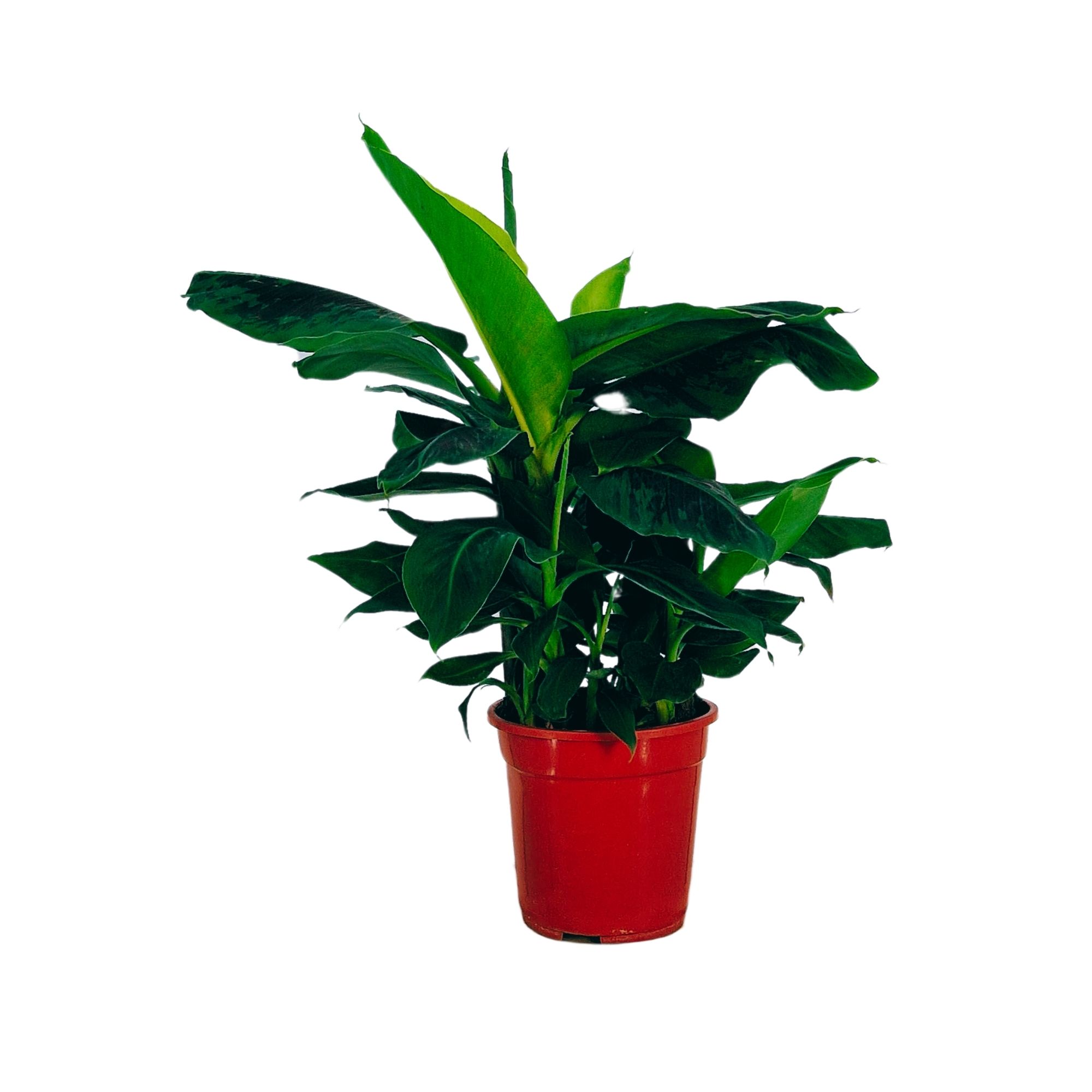 Die Zwerg-Essbanane 'Dwarf Cavendish' ist eine robuste und pflegeleichte Pflanze, die mit ihren großen, dunkelgrünen Blättern in jedem Raum zum Hingucker wird. Ursprünglich aus Ostasien stammend, gehört diese Sorte der beliebten 'Cavendish'-Bananen zu den weltweit am meisten angebauten Sorten. Mit einer maximalen Wuchshöhe von etwa 150 Zentimetern bis zu 2 Metern lässt sich die attraktive Zimmerpflanze sowohl im Zimmer als auch im Wintergarten kultivieren. Trotz des Namens "Zwerg" beeindruckt diese exotische Schönheit mit ihrer stattlichen Größe.