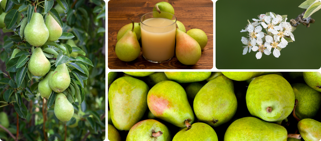 Im Spätsommer reifen daraus saftige, gelb-grüne Birnen mit feinem Aroma und süß-würzigem Geschmack heran – perfekt zum Naschen direkt vom Baum oder für hausgemachte Kompotte.