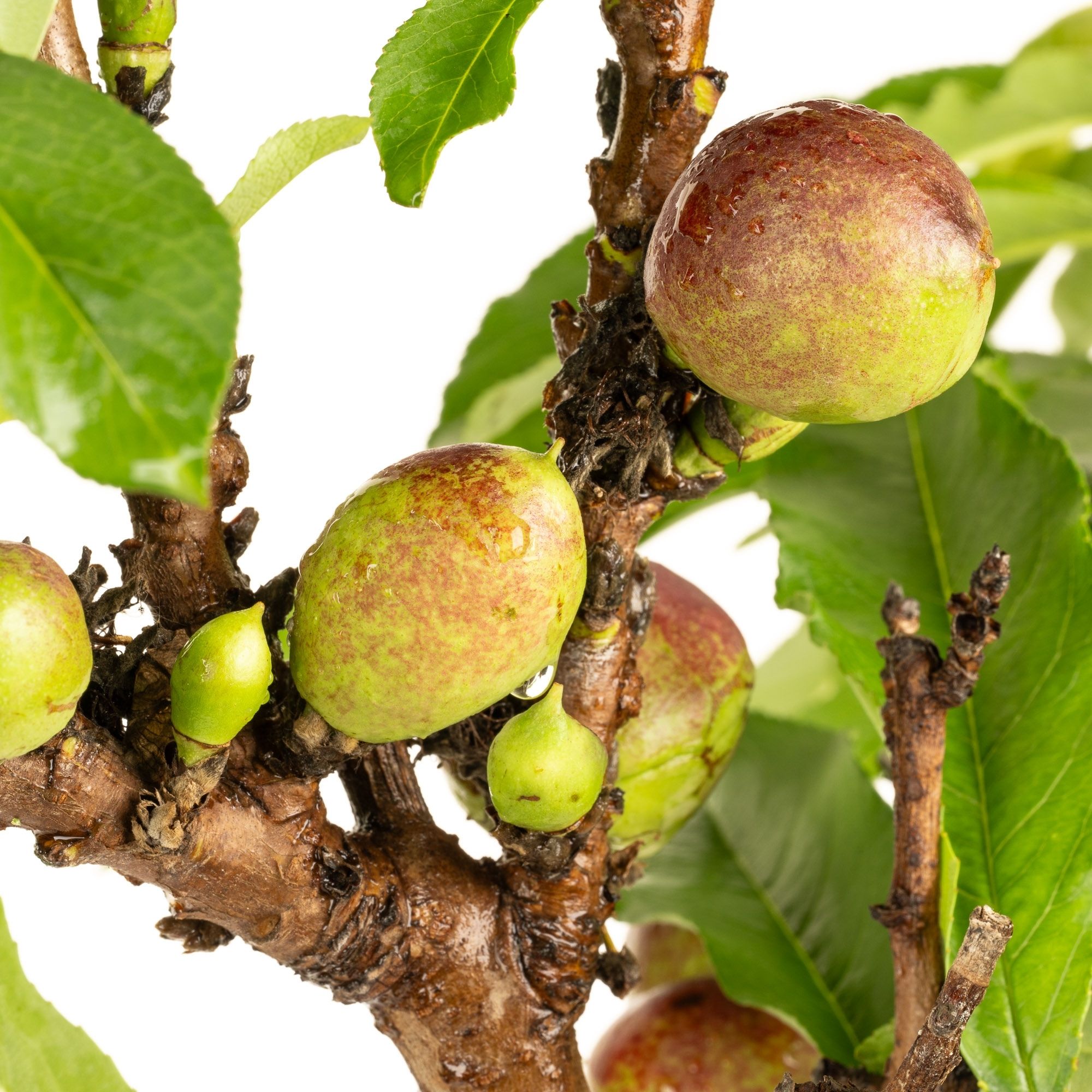 Die Zwergnektarine (Prunus nucipersica ‘Nana’) bringt Sonne, Duft und Genuss direkt auf Balkon, Terrasse oder in den Garten.