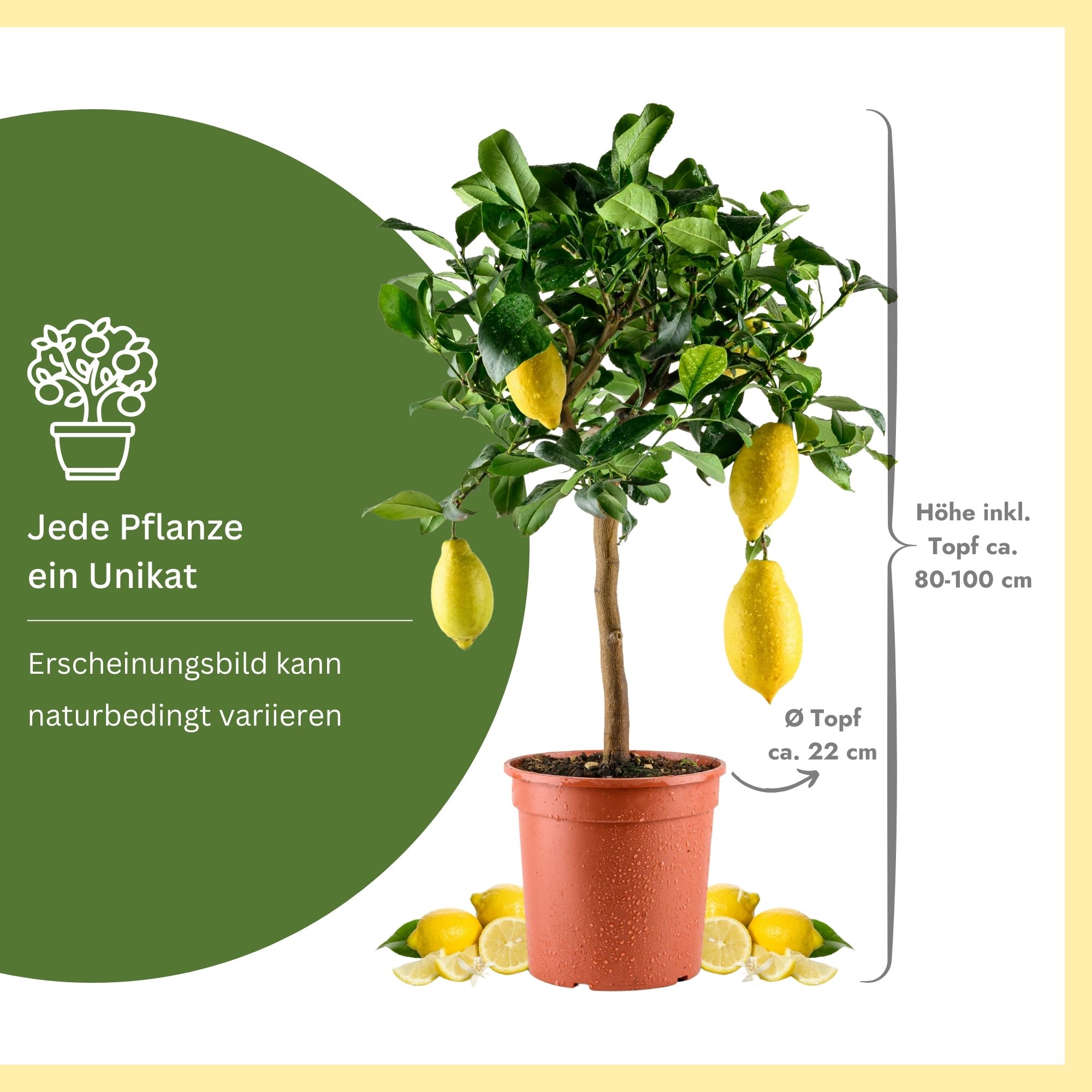 Das gelieferte Bäumchen ist qualitativ top in Ordnung. Es hat sogar schon kleine Zitronen und Blüten. Allerdings bin ich von der Größe mit 70 cm vom Boden gemessen, ein bisschen enttäuscht, da ich mich an den Größen der normalen Zitronenbäume orientiert habe.