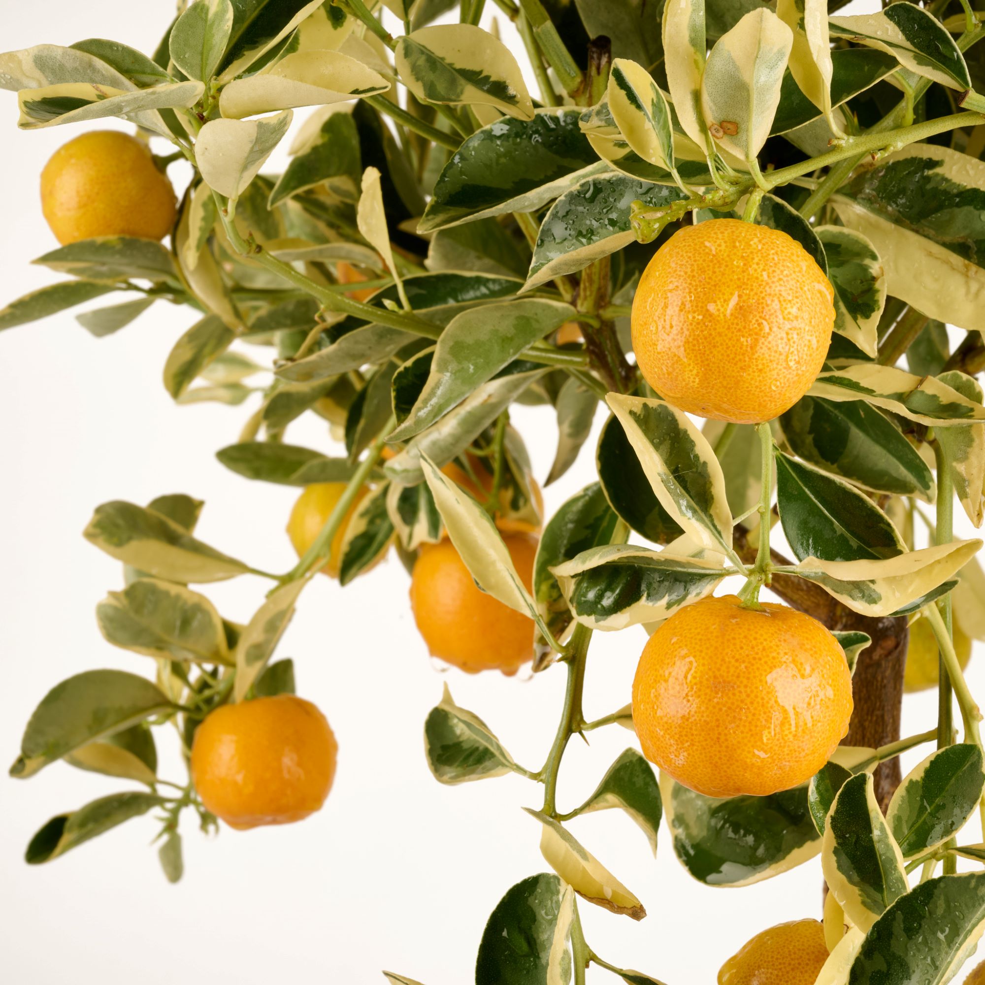 Die Panaché-Calamondin vereint mediterrane Lebendigkeit mit einem Hauch Exotik. Sie kann – wie ihre grünlaubige Schwester – sowohl im Freien als auch in hellen Innenräumen gehalten werden.