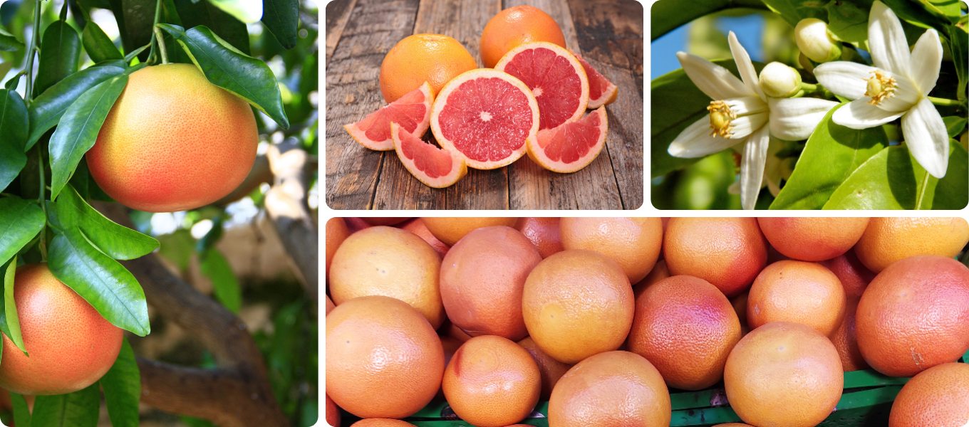 Im Frühjahr erscheinen große, weiß duftende Blüten, die schon bald Fruchtansätze bilden. Über den Sommer entwickeln sich daraus runde, goldgelb bis rötlich schimmernde Früchte mit leuchtend rosafarbenem Fruchtfleisch. Der Geschmack ist etwas süßer und weniger bitter als bei gelben Sorten – mit einer erfrischenden Balance aus Frucht und Säure.