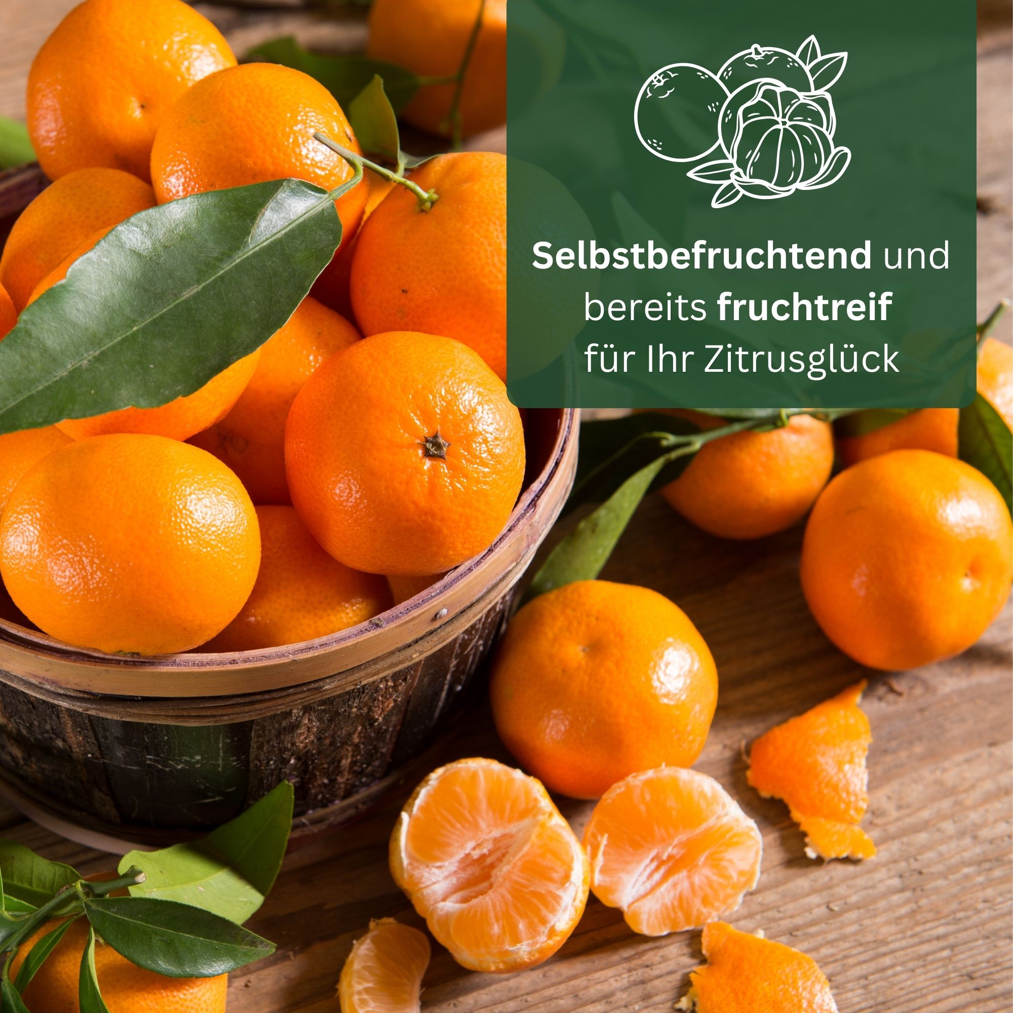 Die zarten, weißen Blüten verströmen im Frühjahr einen intensiven Duft, der an sonnige Tage am Mittelmeer erinnert. Schon bald darauf bilden sich die typischen, aromatischen Mandarinen, die im Winter reifen und mit ihrer süßen, fruchtigen Frische begeistern.