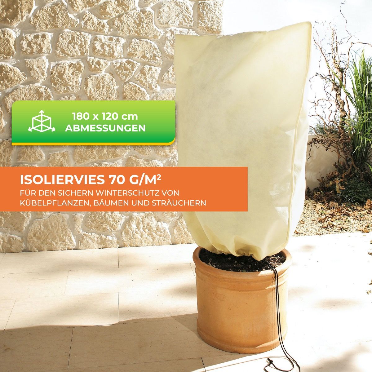 Mit unserer Pflanzenschutzhaube aus Microvlies schützen Sie Ihre Kübelpflanzen und andere wertvolle Pflanzen, wie etwa ausgepflanzte Feigen-, Oliven-, oder Granatapfelbäume, vor extremer Witterung im Spätherbst und Winter. Die langlebige Pflanzenschutzhaube aus Microvlies ist mit dem eingearbeiteten Zugband einfach und sicher zu verschließen.