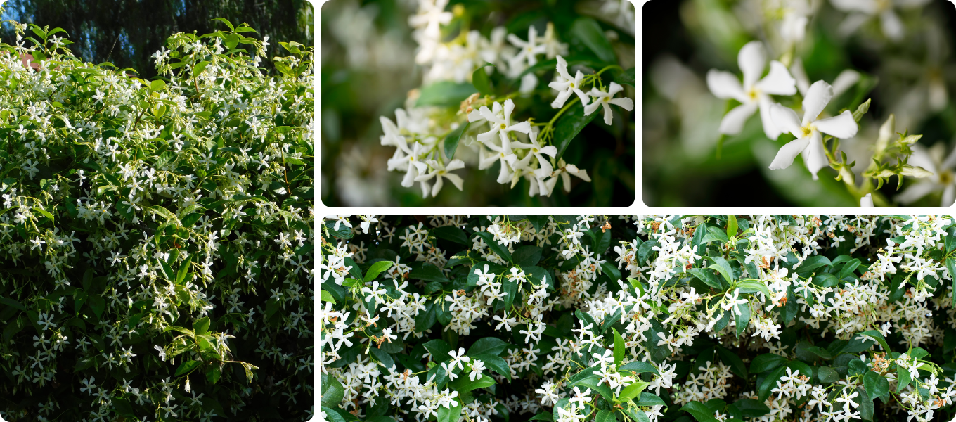 Seine glänzenden, dunkelgrünen Blätter bleiben immergrün, wodurch der Sternjasmin auch außerhalb der Blütezeit eine stilvolle Zierde bleibt. Im Sommer überzieht sich die Pflanze mit einem Meer aus duftenden Blütensternen – ein wahrer Magnet für Bienen und Schmetterlinge.